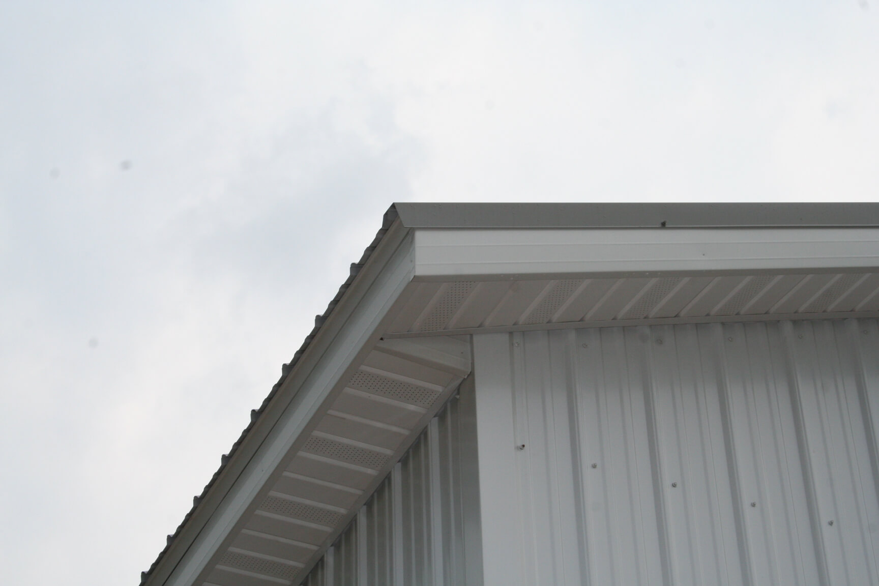 Two garage doors were installed on both gable ends of the building, giving the homeowner the freedom to drive straight through the building. Therefore, eliminating the risk of backing the RV up and possibly hitting the building upon exiting. Finishing it off, wainscotting with a Z trim cap was added to give the building a unique look. The builder did the gable overhang differently from the norm, offering a clean finish and added dimension to the high roof line.